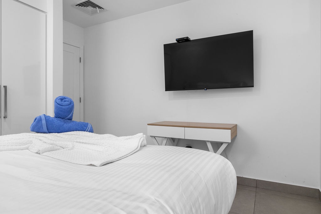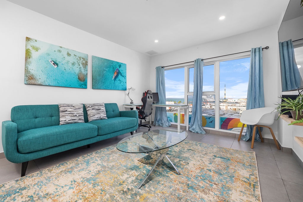Enjoy the convenience of a well-equipped kitchen, in-unit washer/dryer, free Wi-Fi, and Cable TV. The complex boasts incredible amenities, including an infinity pool overlooking Oranjestad Marina, a rooftop hot tub with ocean views, and a gym with stunning turquoise-water scenery.