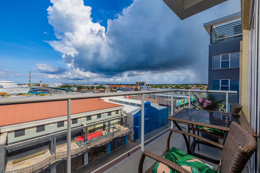 • A stunning infinity pool overlooking the Oranjestad Marina wit tropical deck create a relaxing environment at the center of the complex with poolside lounges and umbrellas from 8:00 am to 9:00 pm.