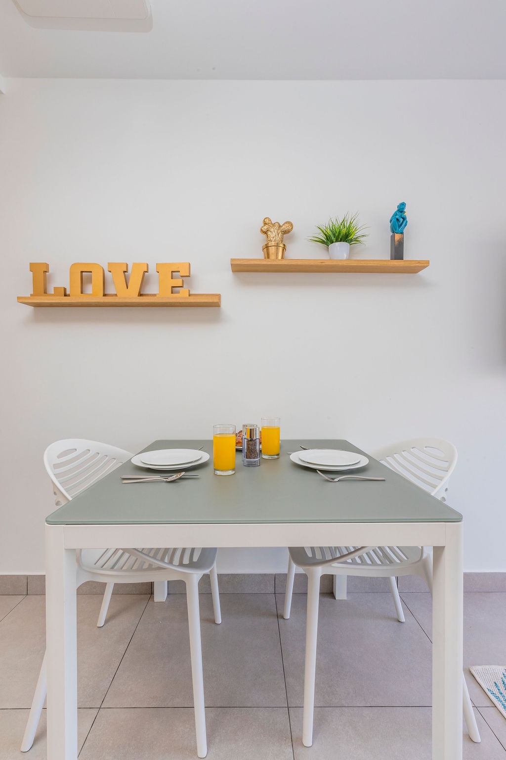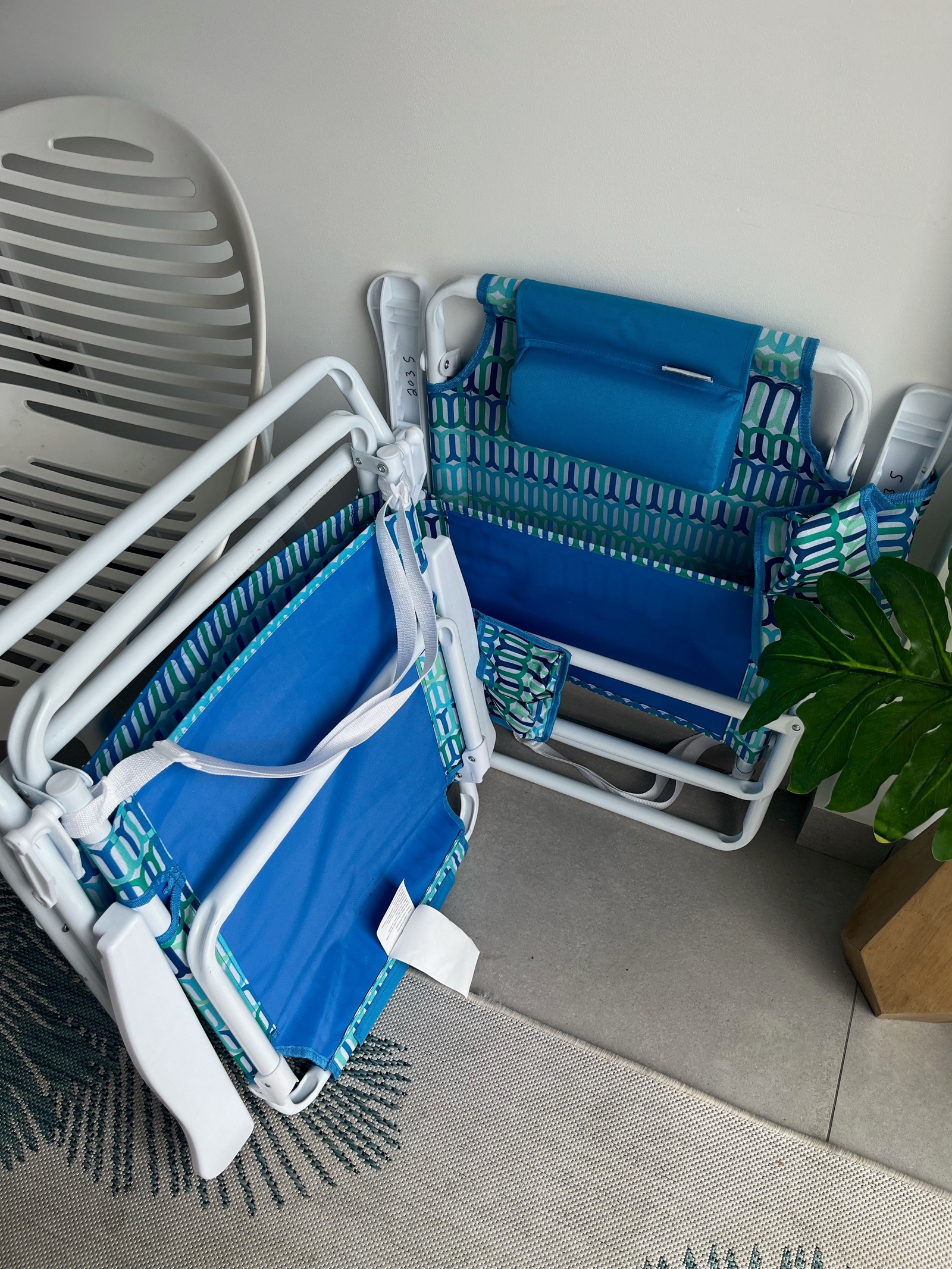 • Bathroom has their own white towels and blue beach towels in the vanity.