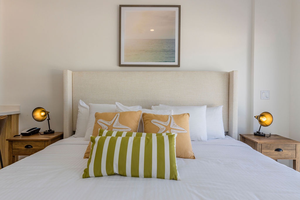 • A stunning infinity pool overlooking the Oranjestad Marina wit tropical deck create a relaxing environment at the center of the complex with poolside lounges and umbrellas from 8:00 am to 9:00 pm.