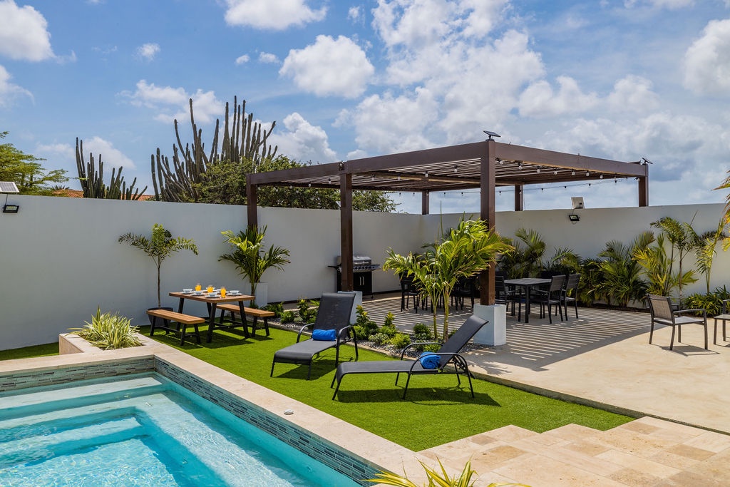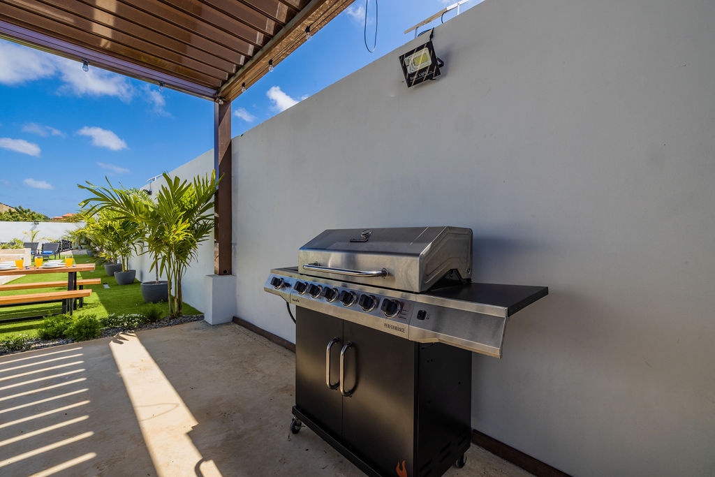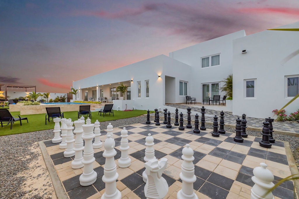 One of the highlights of our home is the beautiful private pool, where you can relax and soak up the Caribbean sunshine or take a refreshing dip to cool off. If you're feeling competitive, our property also includes a ping pong table and a beautiful giant chess set, providing endless entertainment for everyone in your group. This villa also has a beautiful deck next to the pool with a bbq grill.