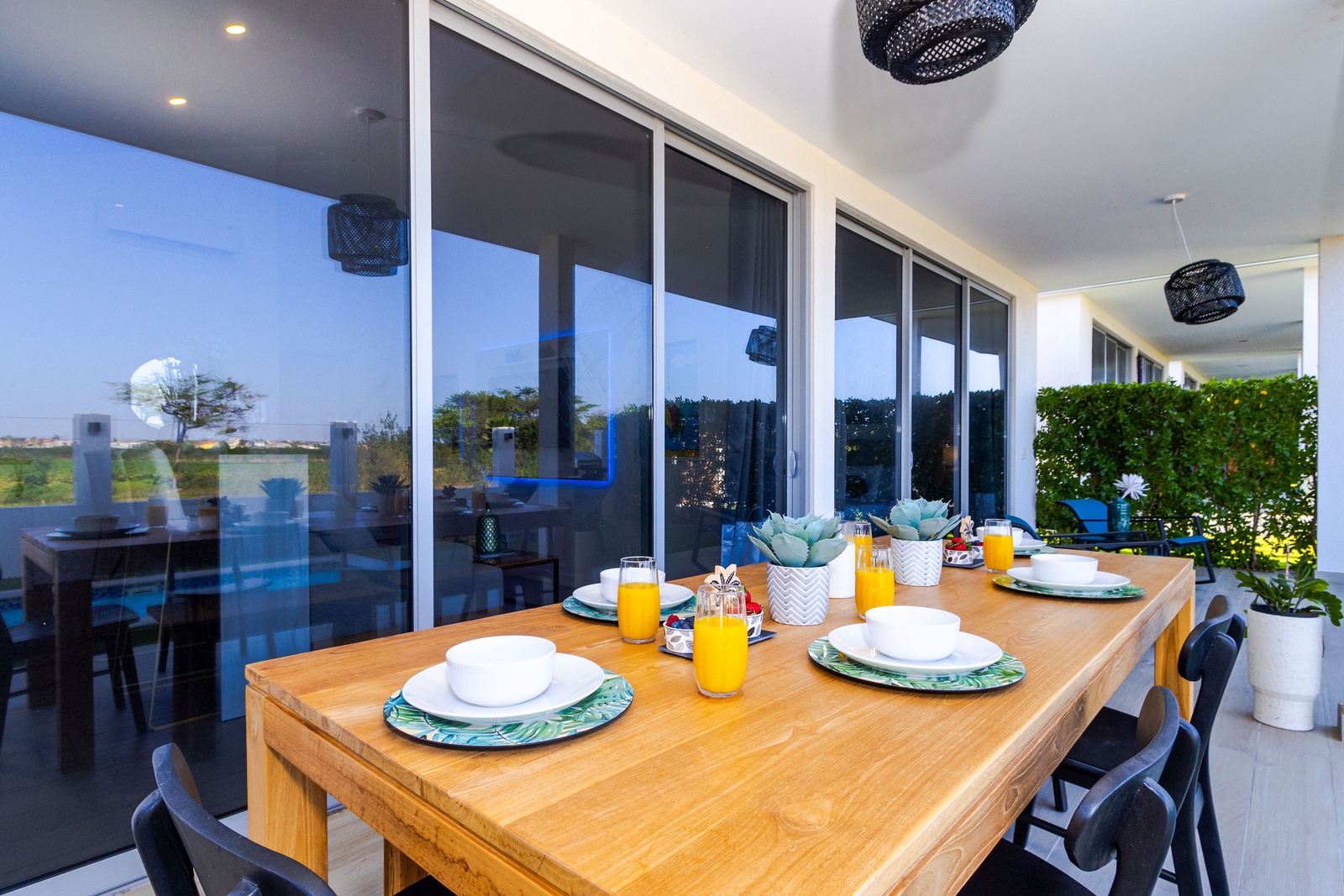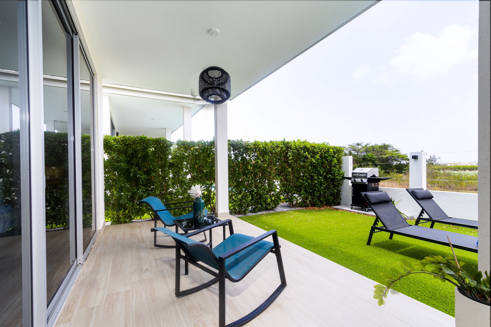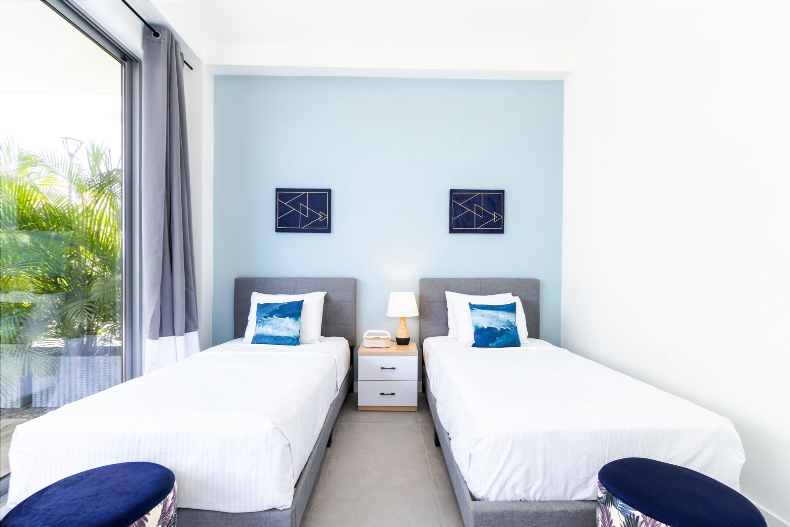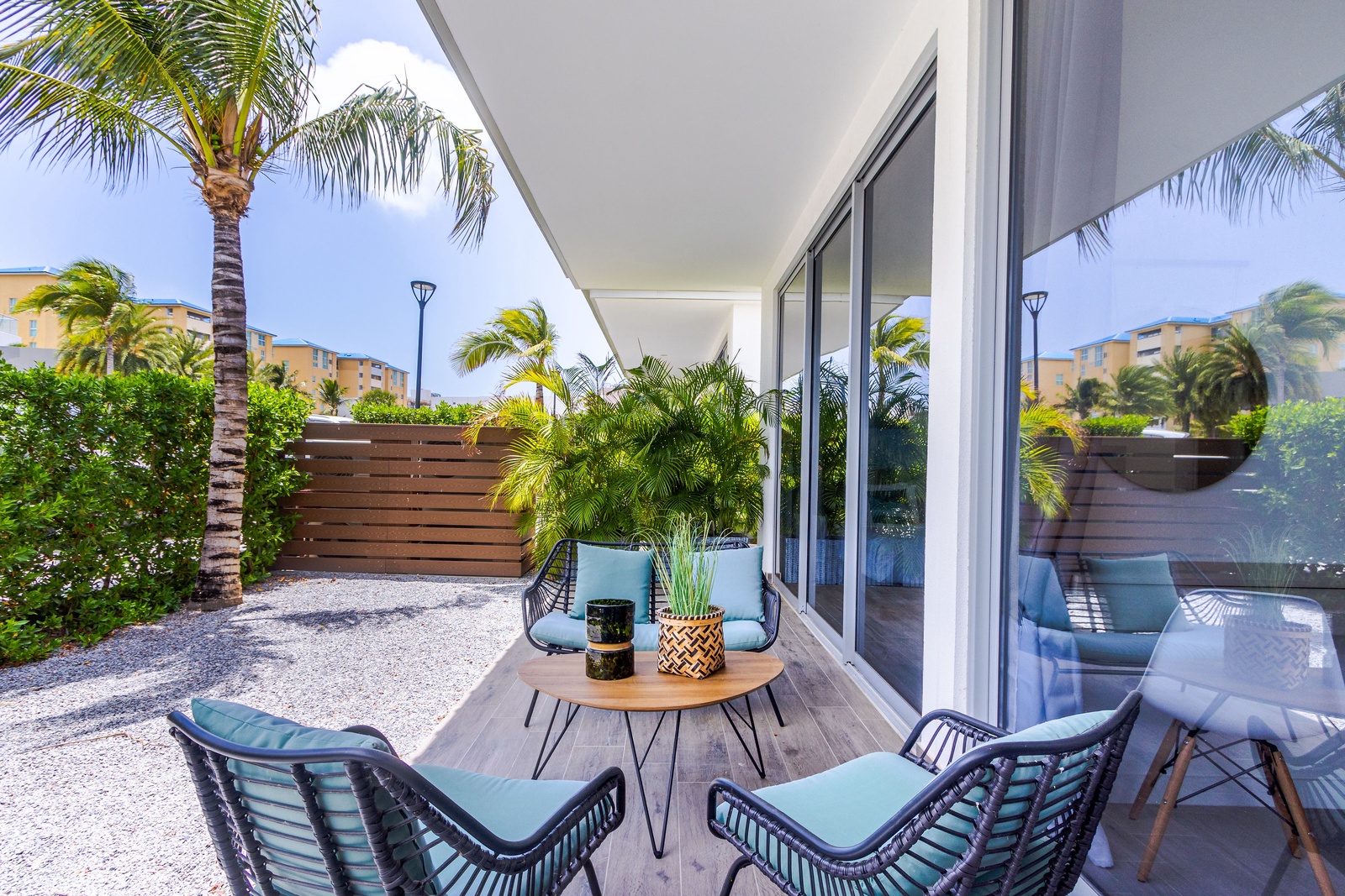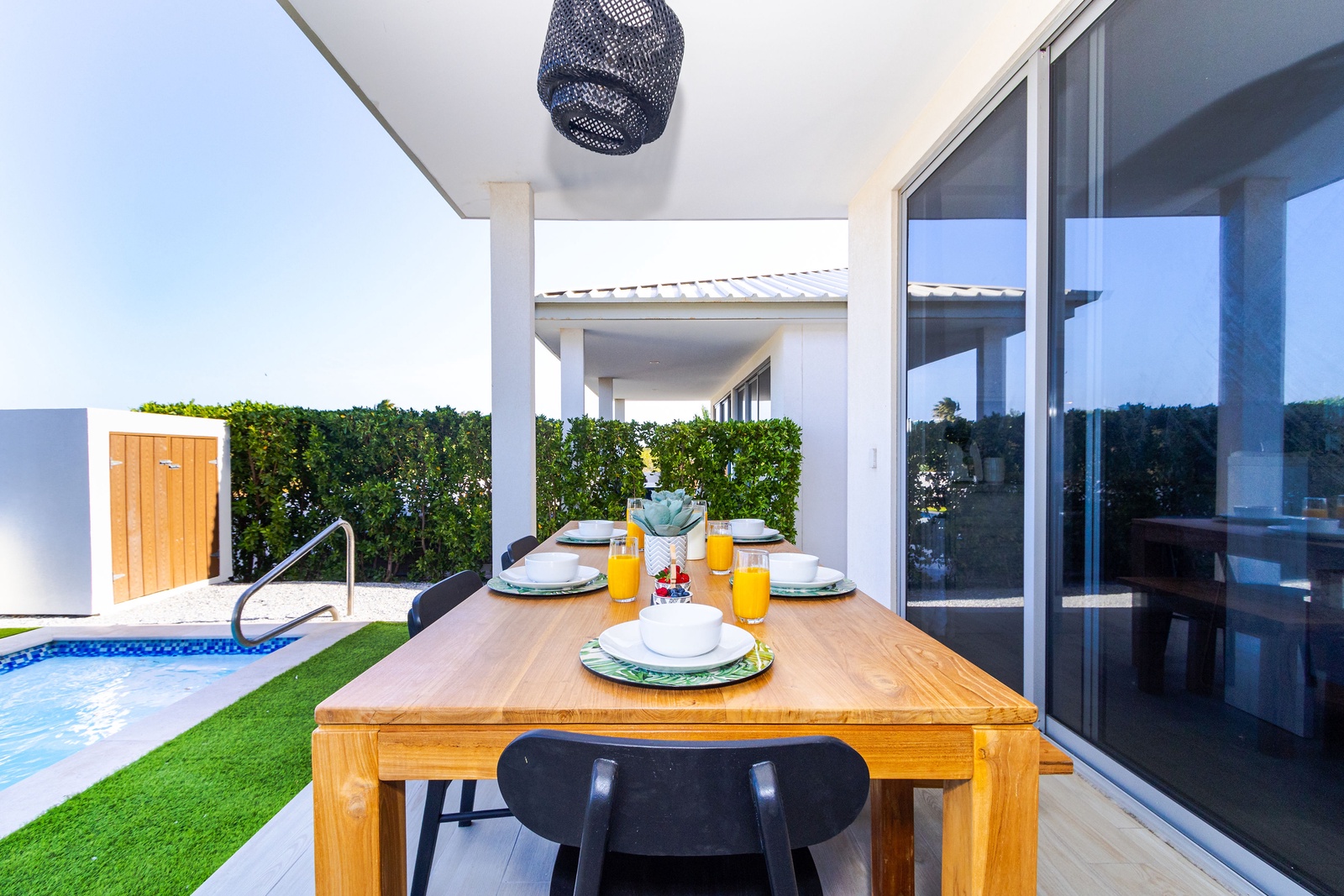 Exclusive chic modern 3 BR/2BA villa. This modern private villa provides the best of both worlds giving you a private backyard with plunge pool with amazing nature view of the “Bubali Plas” and the luxury of top class amenities of Azure Beach Residences located just steps from world renowned Eagle Beach.