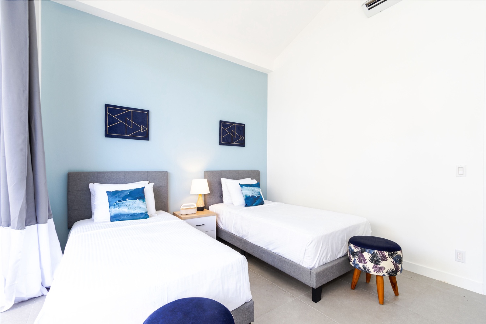 This stunning villa is fully airconditioned to cool you off after a day lounging at the beach. It offers a king bed, queen bed, two twin beds and two full bathrooms. Enjoy modern décor, a fully equipped kitchen, spacious living and dining areas, and direct access to outdoor patio. Perfect for upto 6 guests.